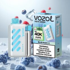 VOZOL Vista 20000 Puffs Gjenoppladbar med 650mAh batteri, 2% nikotin, OLED-skjerm – Blå Bringebær Is