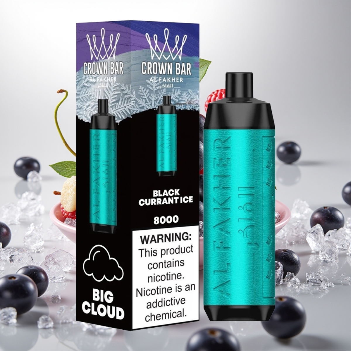 Al Fakher Crown Bar 8000 Crystal Engangs Vape – Svartsolbær Is, 18ml e-væske, 8000 puffs, 600mAh batteri