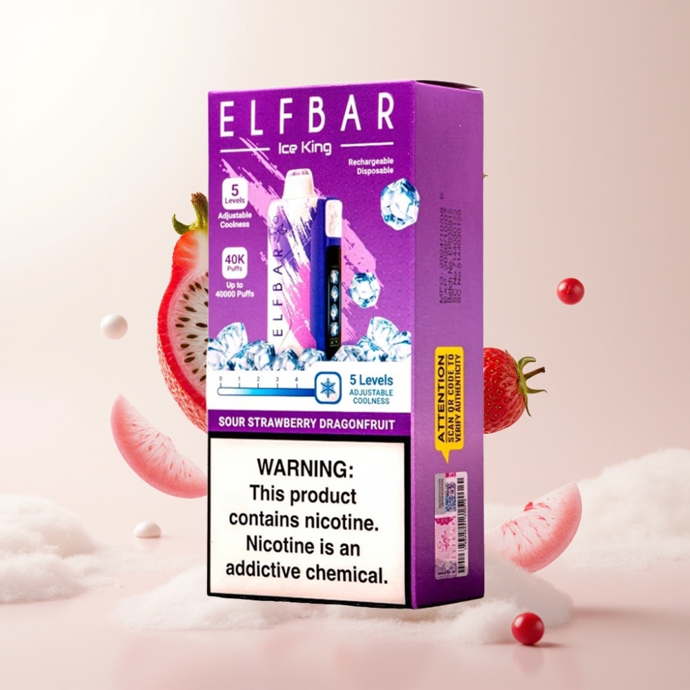 Elf Bar Ice King 40000 Puffs Engangsdamp med Sur Jordbær Dragefrukt, 20ml, 5% Nikotin, 850mAh Batteri, Justerbar Kjøling