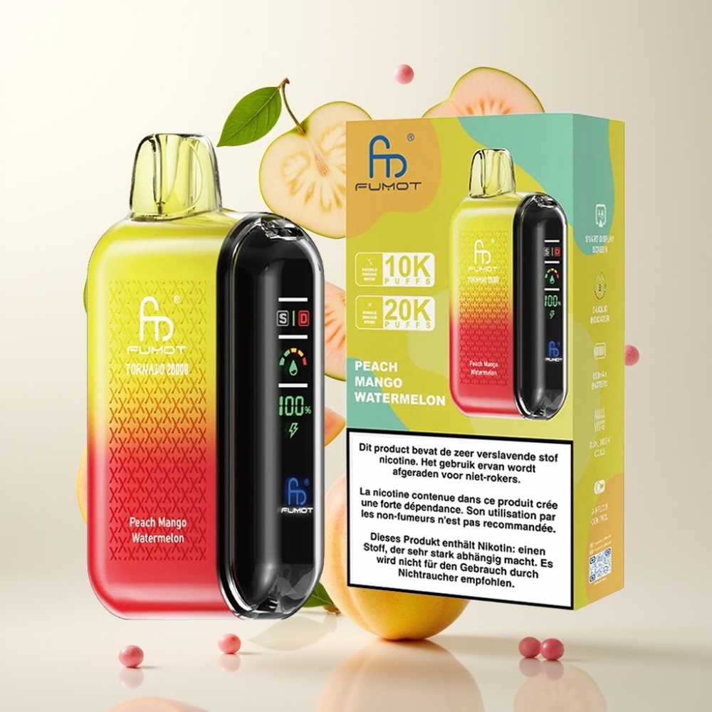 Fumot Tornado 20000 Puffs Engangsdamp Peach Mango Vannmelon – 20000 Puffs, 20ml, 850mAh