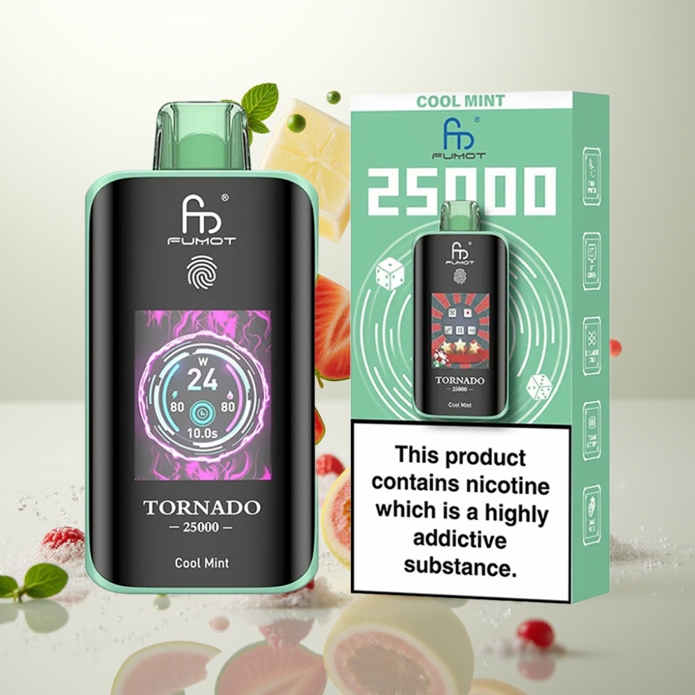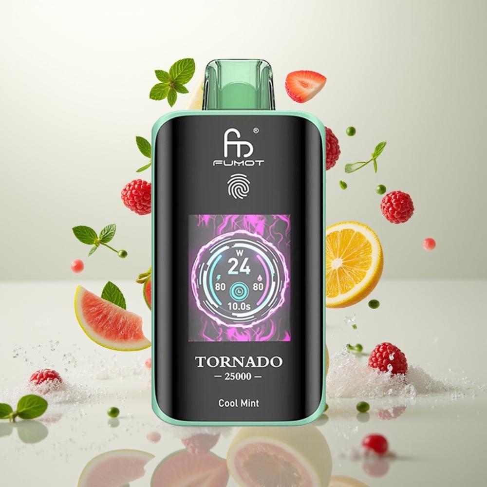 Fumot Tornado 25000 Puffs Engangsdamper Kjølig Mynte med HD-skjerm, 700mAh batteri, 20ml e-væske