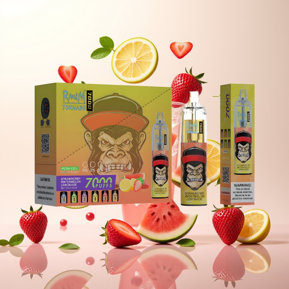 Fumot Tornado 7000 Engangsvaper Jordbær Vannmelon Lemonade – 7000 Puffs, 14 ML, Mesh Coil