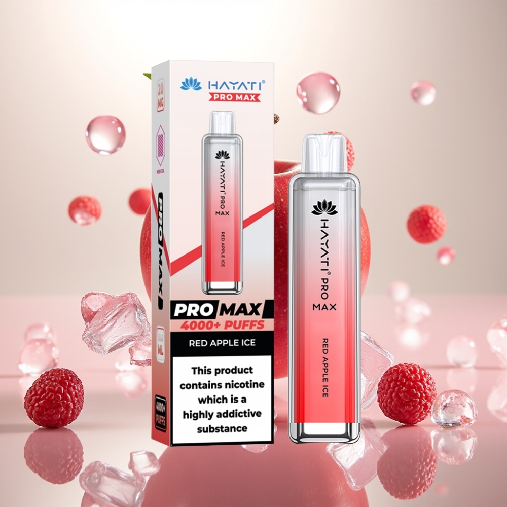 Hayati Pro Max 4000 Puffs Engangsdamp med Rød Eple-Is, 1400mAh, 2ml/10ml, 2%/5% Nikotin