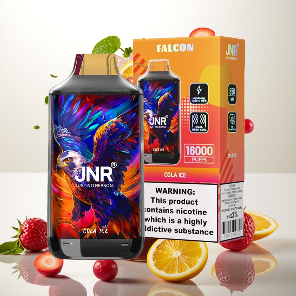 JNR Falcon 16000 Puffs Engangs Vape Cola Is – 22ml, 850 mAh, Dual Mesh Coil