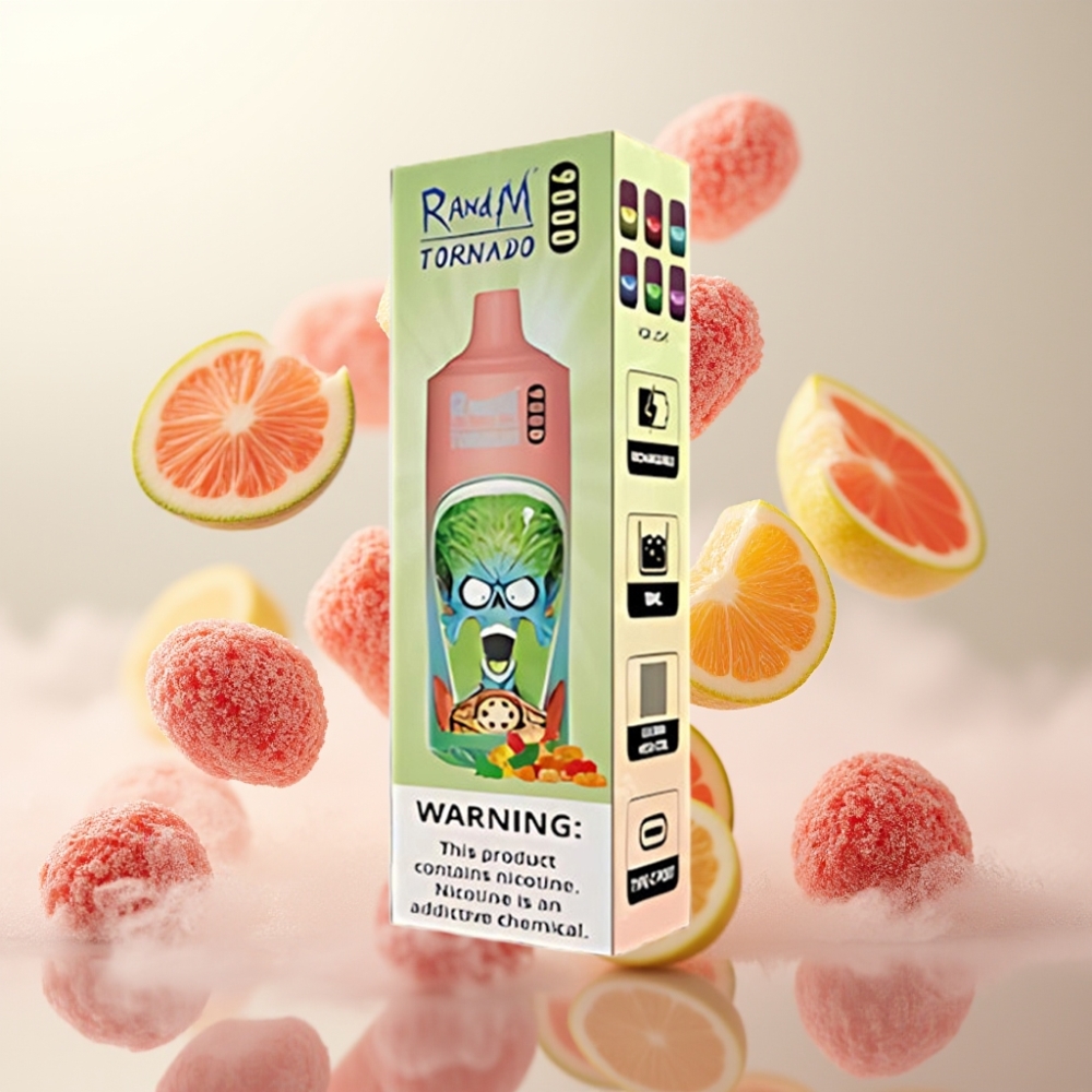 RandM Tornado 9000 Puffs – 850 mAh, 18 mL, Mesh Coil – Gummy Bear (Tyttebær)