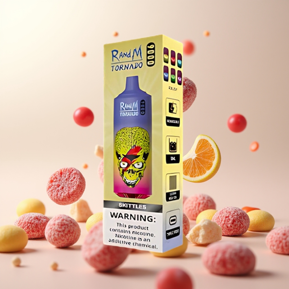 RandM Tornado 9000 Puffs – 850 mAh, 18 mL, Mesh Coil, RGB Display, 54 Smaker – RandM Fumot Tornado 9000 Puffs Engangsvape Skittles