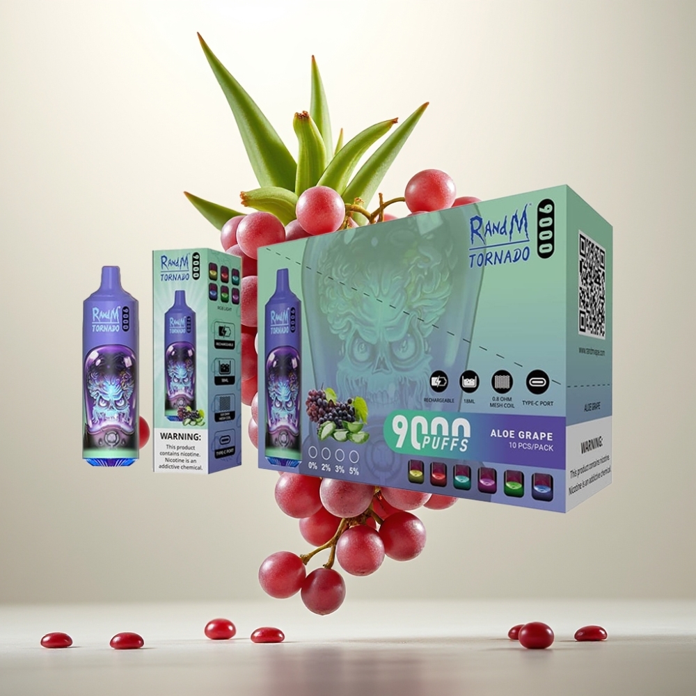 RandM Tornado 9000 Puffs – 850 mAh, 18 mL, Mesh Coil, RGB Display, Aloe Grape (Aloe og Drue)