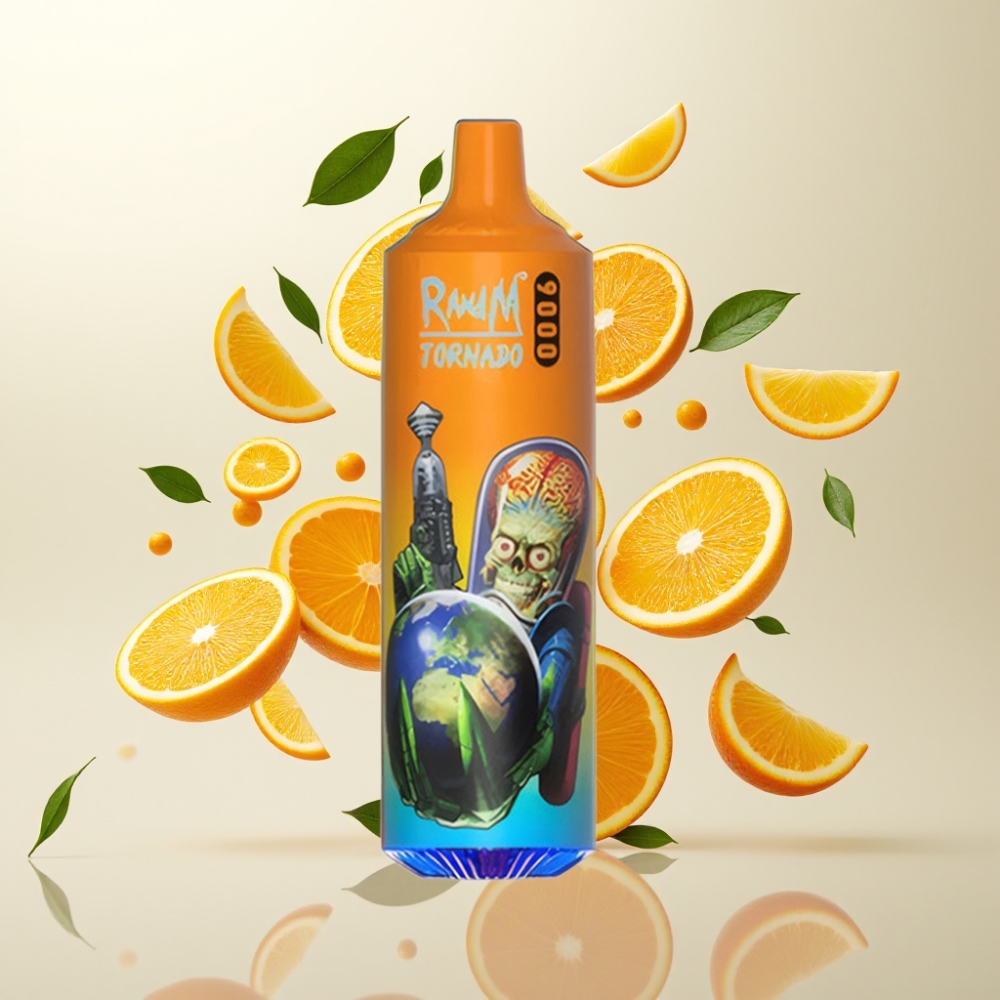 RandM Tornado 9000 Puffs – 850 mAh, 18 mL, Mesh Coil, RGB Display, Appelsinbrus