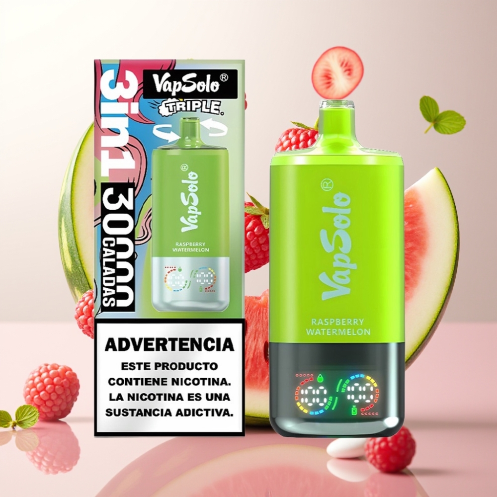 VapSolo Triple 30000 Puffs Engangsdamp – Bringebær/Vannmelon, 40ml, 20 mg/ml eller 50 mg/ml, Type-C-lading