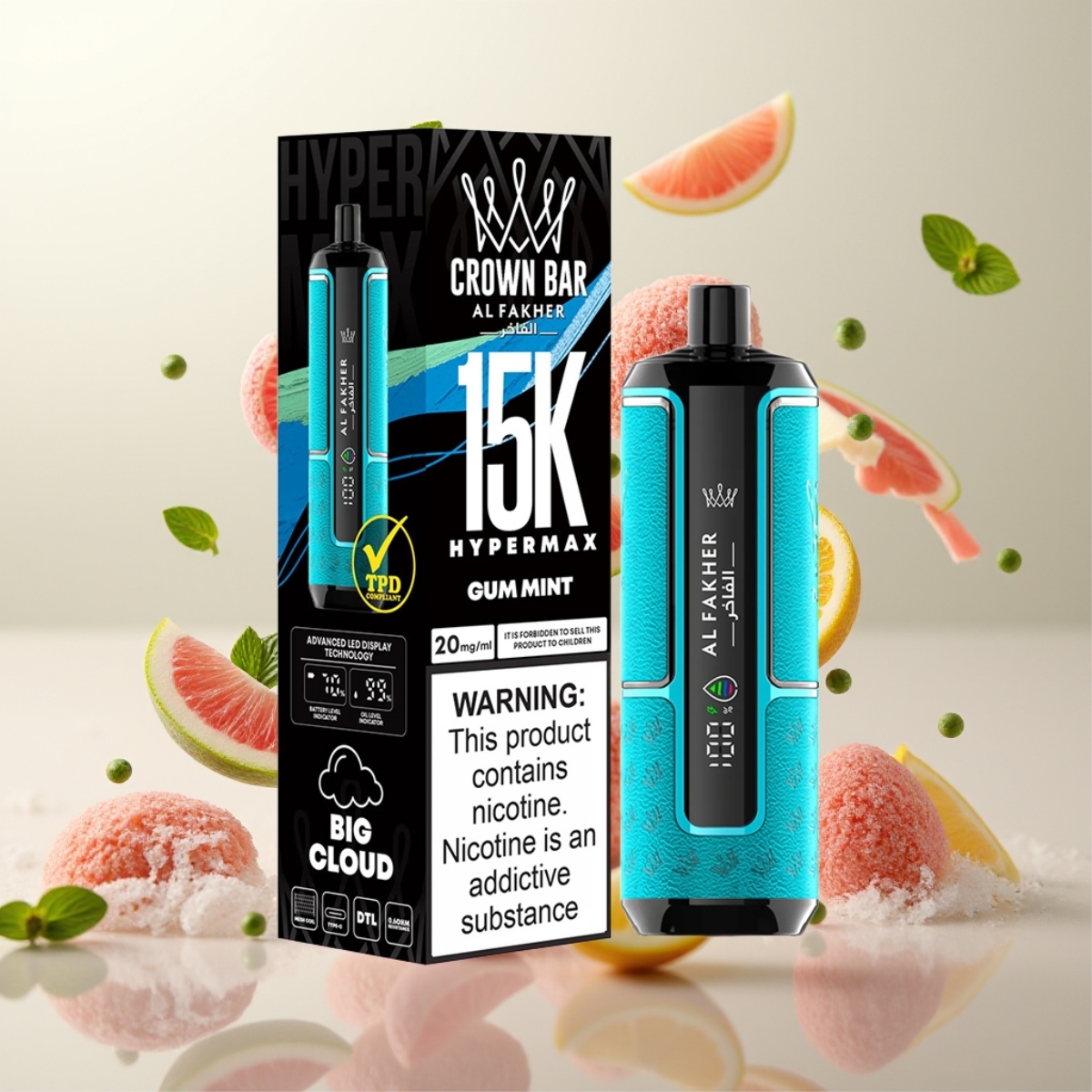 Al Fakher Crown Bar 15K Hypermax Engangs Vape Kit – 22ml, 600mAh, Type-C, 15 000 puffs, 6mg/ml, Gummi Mynte