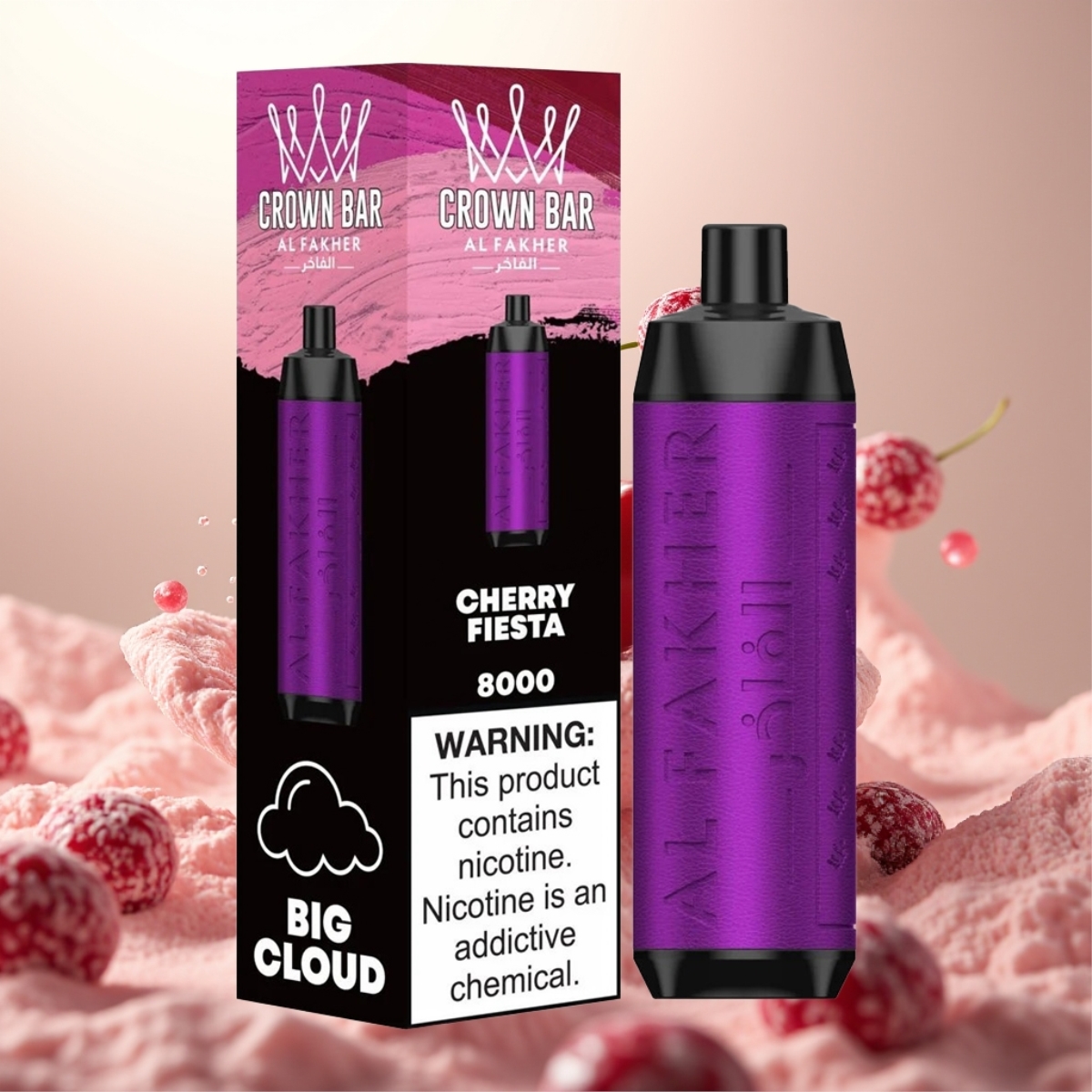 Al Fakher Crown Bar 8000 Crystal Engangs Vape Cherry Fiesta – 18ml, 5mg Nikotin, 8000 Trekk