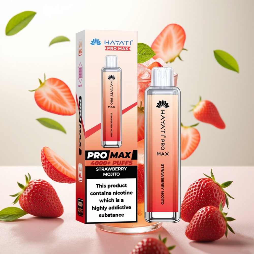 Hayati Pro Max 4000 Puffs Engangs Vape Jordbær Mojito – 1400mAh, 2ml/10ml, 2%/5% Nikotin