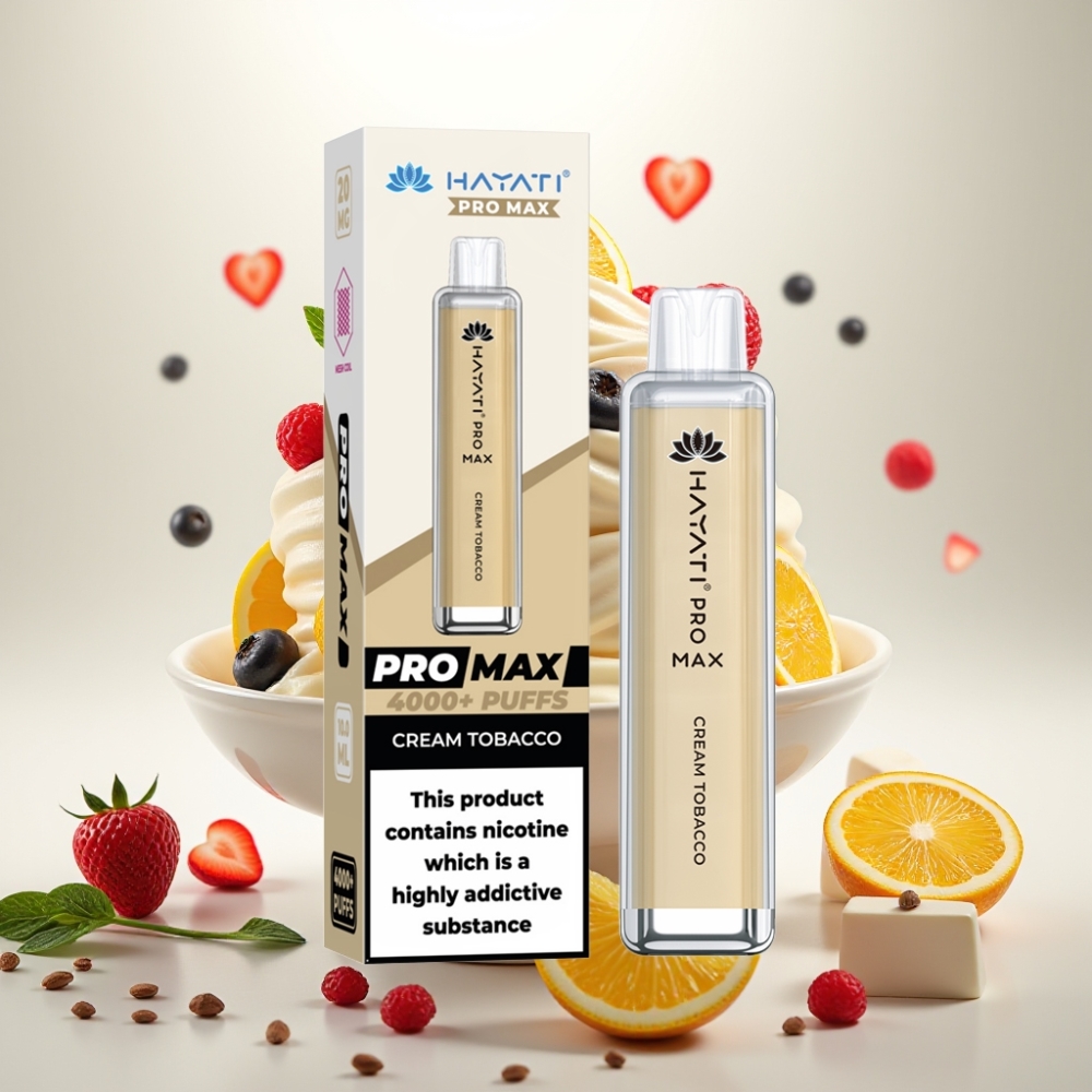 Hayati Pro Max 4000 Puffs Engangsdamp med Krem Tobakk – 2%/5% Nikotin, 1400mAh Batteri, 2ml Tank