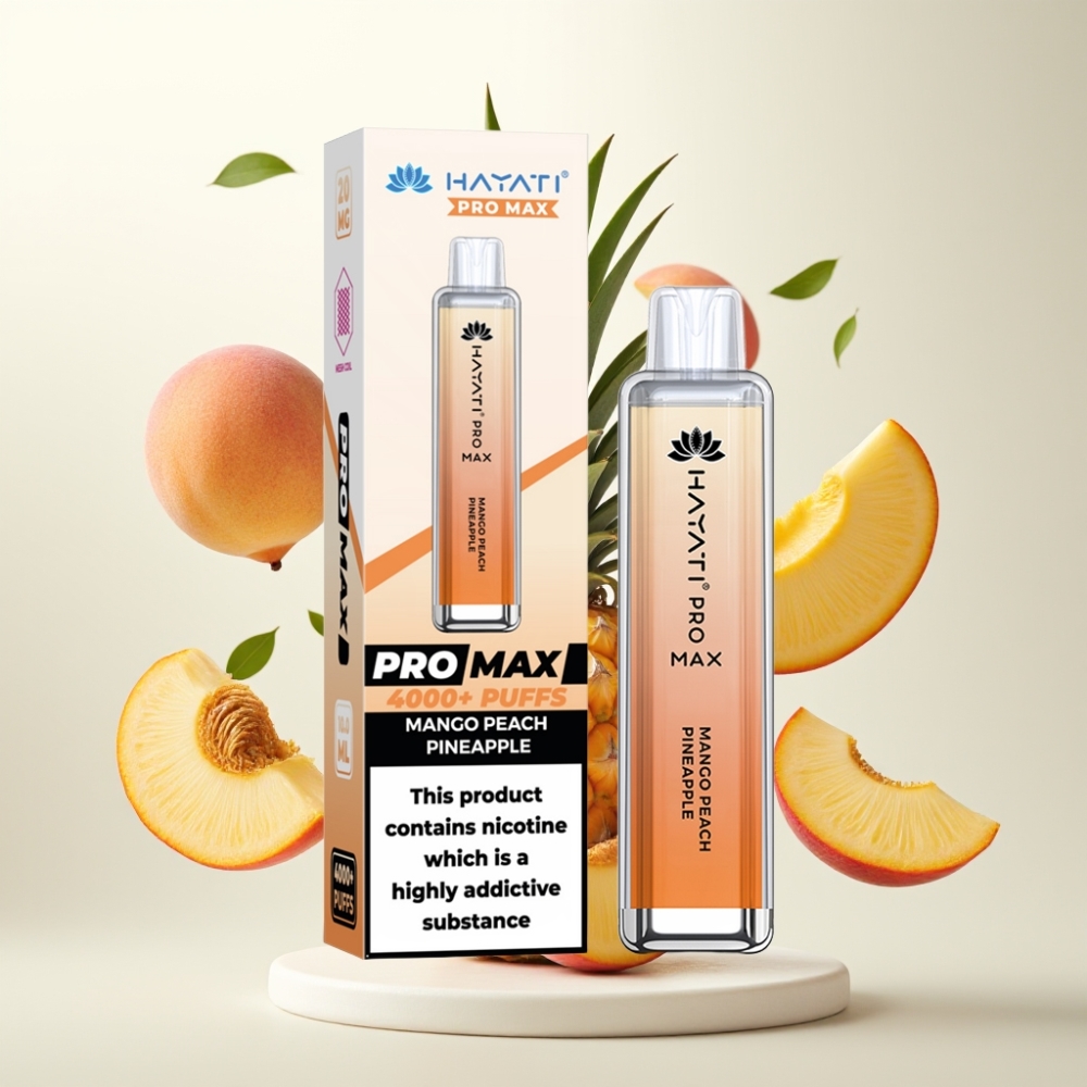Hayati Pro Max 4000 Puffs Engangsdamp med Mango Fersken Ananas – 1400mAh, 2ml/10ml, 2%/5% Nikotin