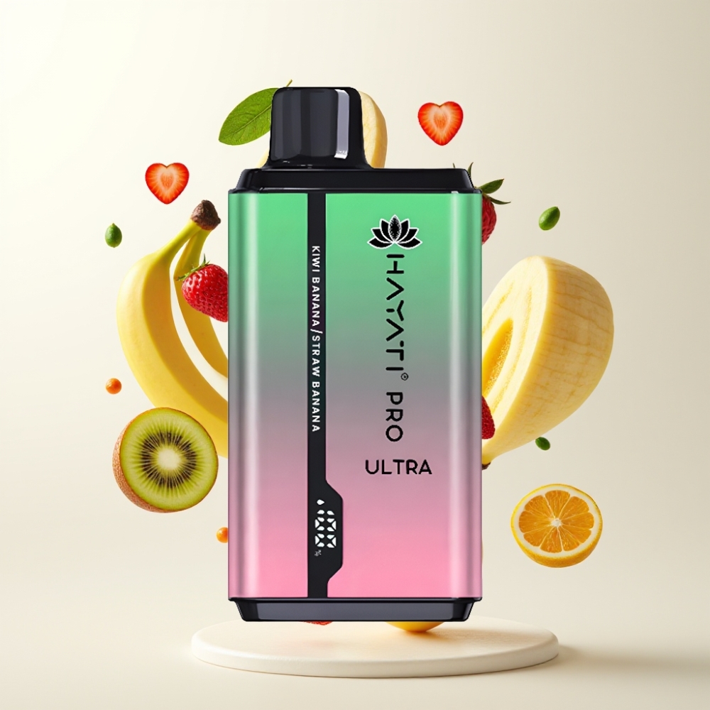 Hayati Pro Ultra 15000 Puffs Engangs Vape Kiwi Banan Jordbær Banan – 15000+ Puffs, 850mAh, 2×12ml