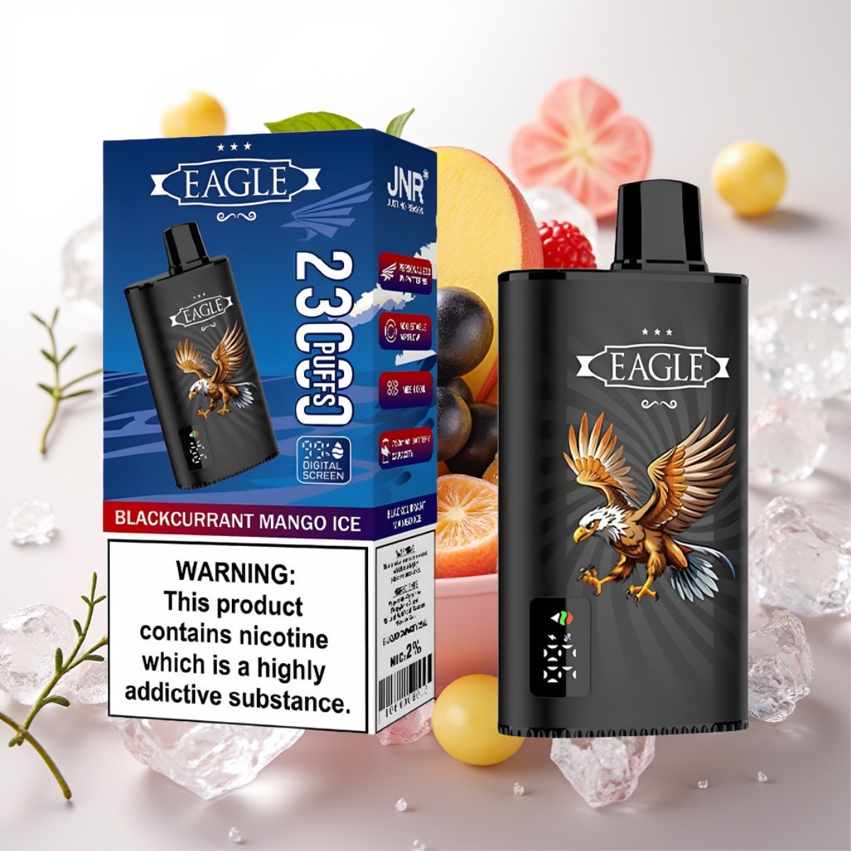 JNR EAGLE Smart 23000 Puffs Engangs Vape – Digitalt Skjerm, Justerbar Luftstrøm, 25ml e-Væske, Solbærmango Is