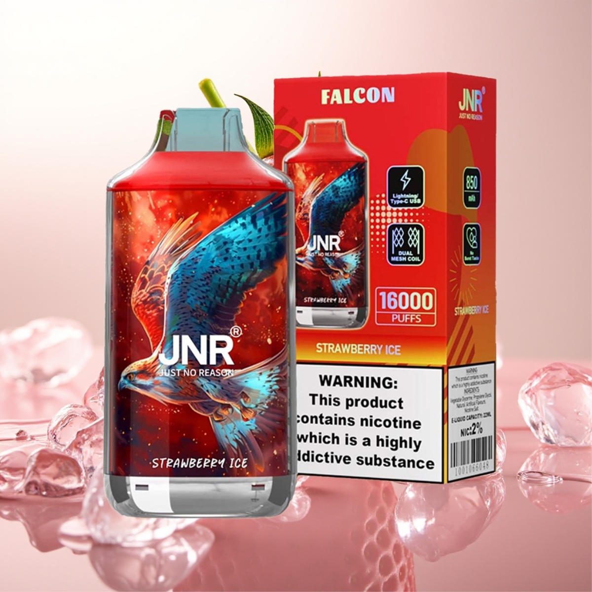 JNR Falcon 16000 Puffs Engangsvaper Jordbær Is – 850 mAh, 22ml, Dual Mesh Coil