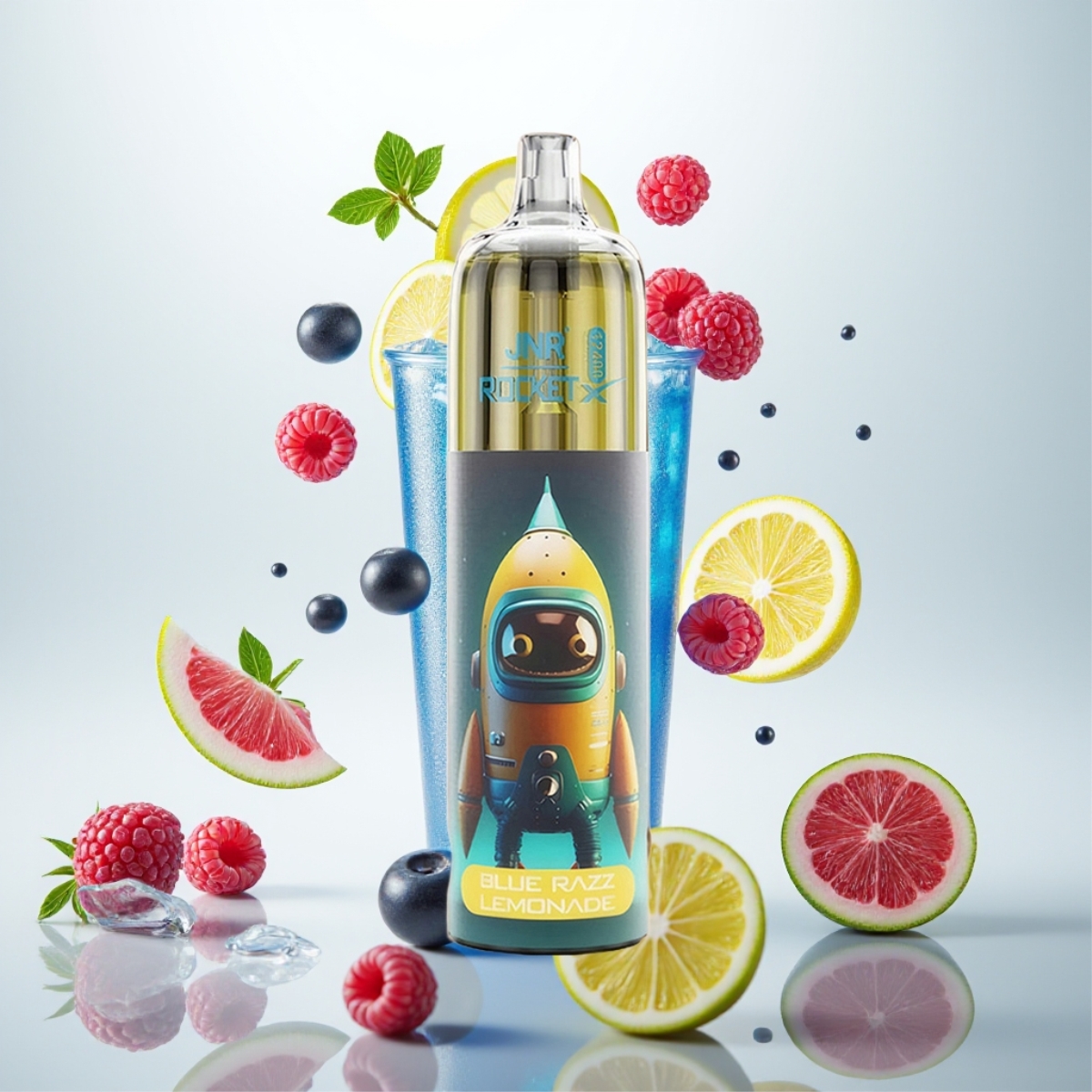JNR Rocket-X 12400 Puffs Engangs Vape – Justerbar Luftstrøm, 850mAh Batteri, Type-C Lading, Blå Bringebær Sitronade