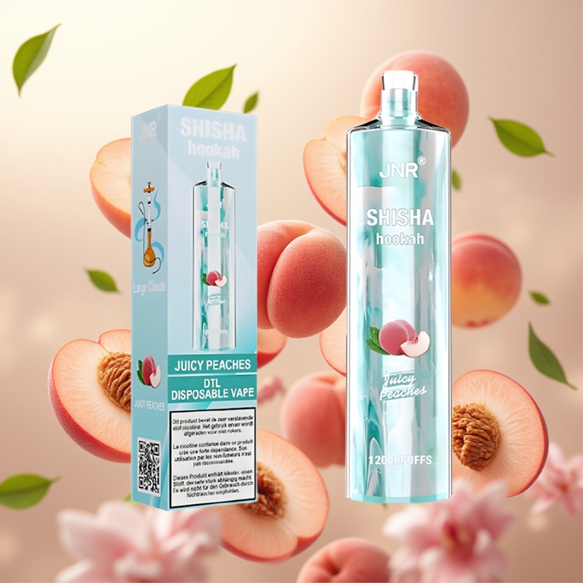 JNR Shisha Hookah 12000 Puffs Engangs Vape Juicy Peaches (Fersken) – 24ml, 750mAh, 0.6 Ohm mesh coil
