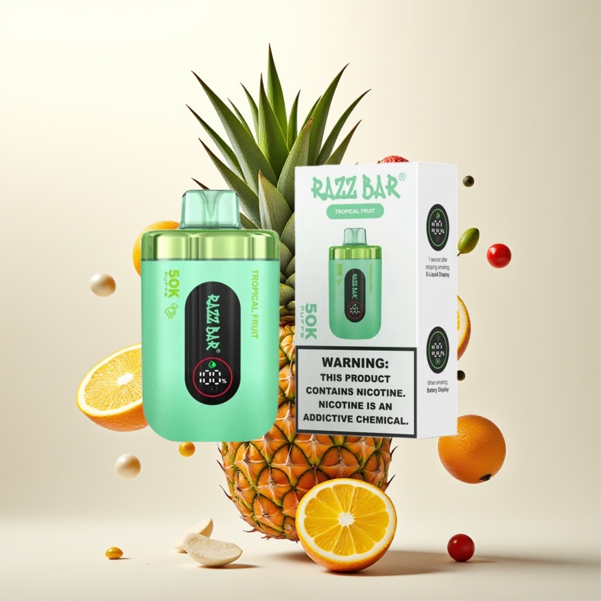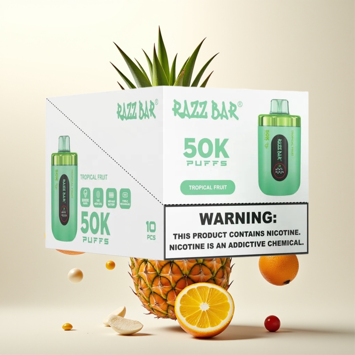 Razz Bar 50K Puffs Engangs Vape Tropisk Frukt – 50000 Puffs, 1.0 Ohm Mesh Coil, Type-C