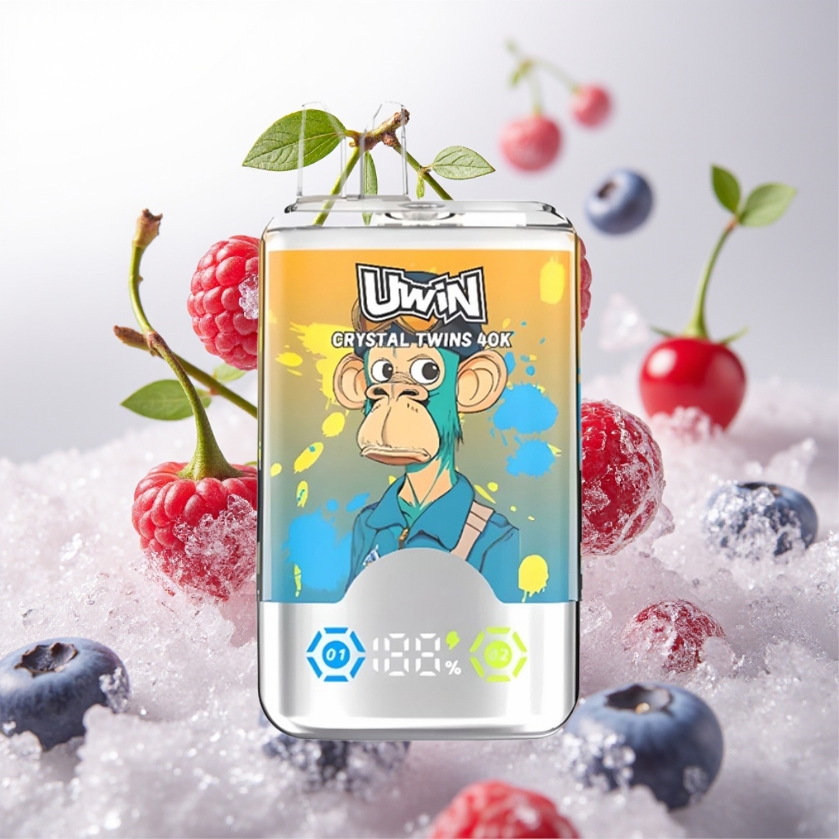 UWIN Crystal Twins 40000 Puffs Blåbær Bringebær Kirsebær Is – 32ml, 850mAh, Type-C