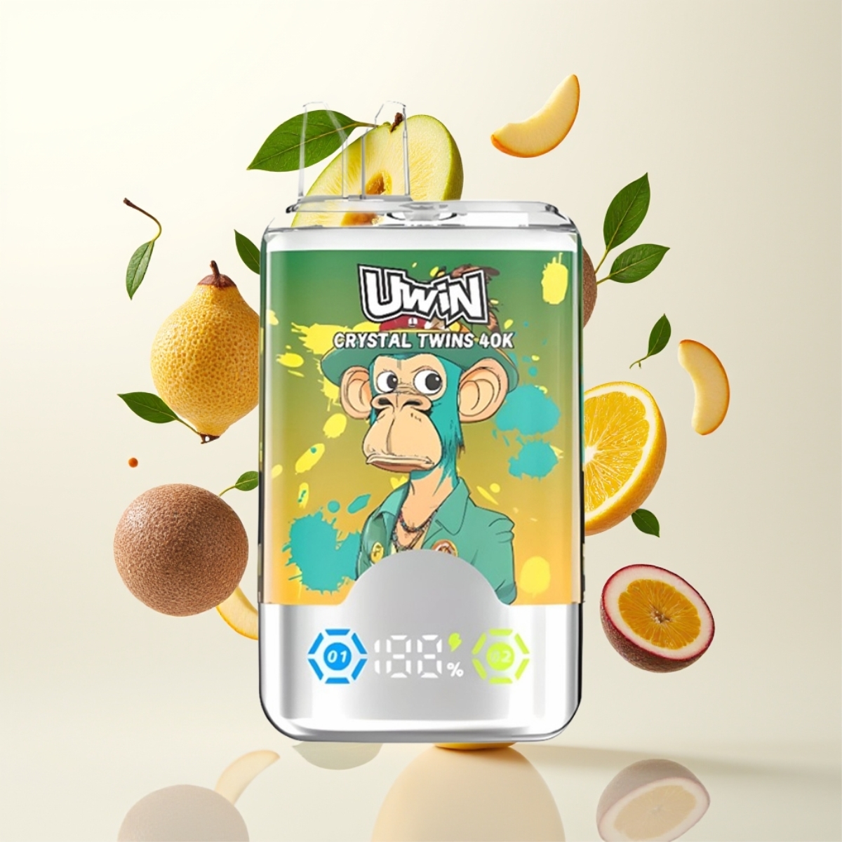 UWIN Crystal Twins 40000 Puffs Engangs Vape Kiwi Pasjonsfrukt Guava To Epler – 32ml, Type-C, 850mAh