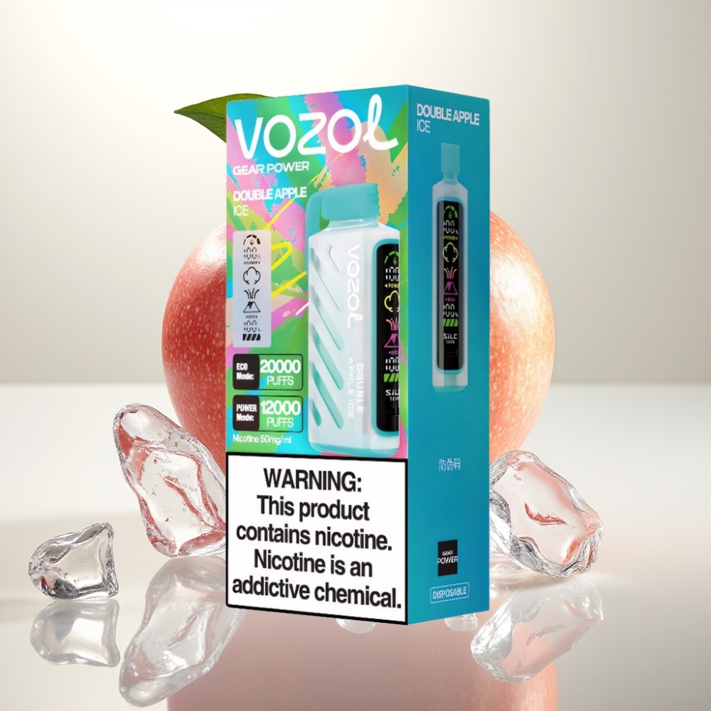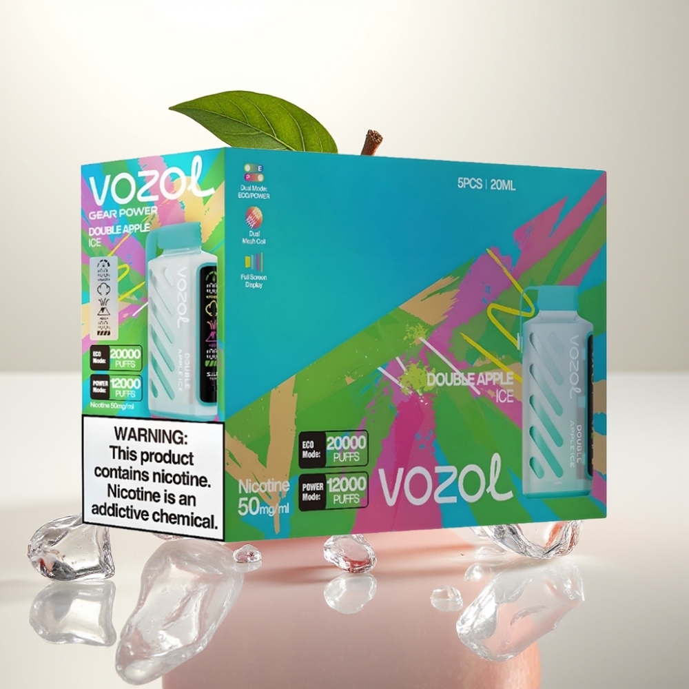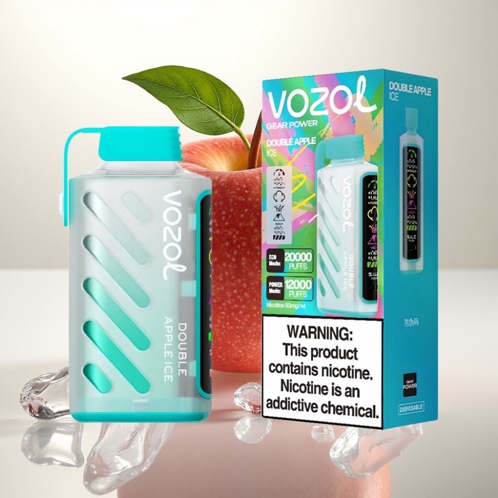 VOZOL Gear Power 20000 Puffs Dobbel Eple Is – 20mL, 5% Nikotin, Full Skjerm, Dual Mesh Coil