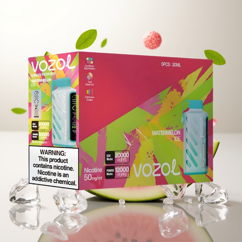 VOZOL Gear Power 20000 Puffs Vannmelon Is – 20mL, 5% Nikotin, Dual Mesh Coil, Full Skjerm