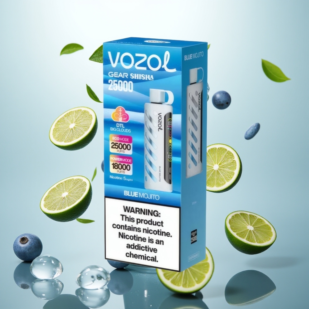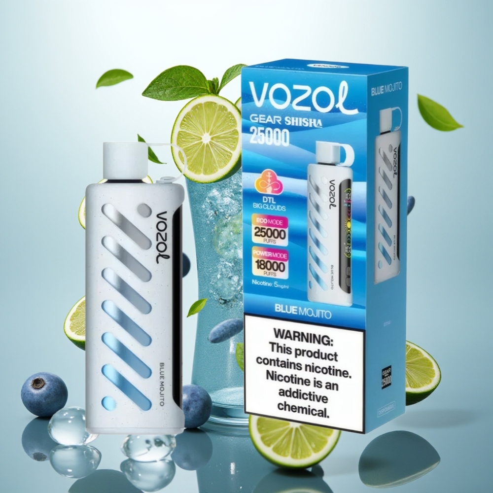 VOZOL Gear Shisha 25000 Puffs – 30 deilige smaker, Dual Mesh Dual Modes, 1000mAh batteri – Blå Mojito