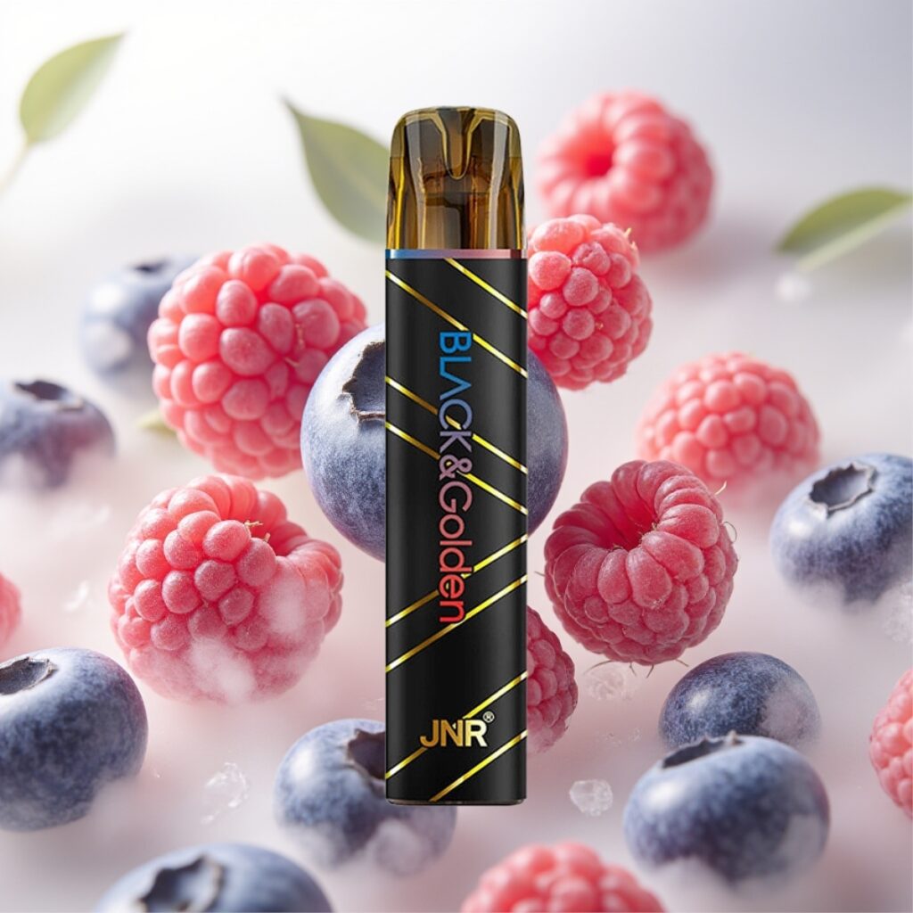 JNR Black&Golden 600+200 Puffs Engangs Vape Blåbær Sur Bringebær – 800 Puffs, 550mAh, 2ml